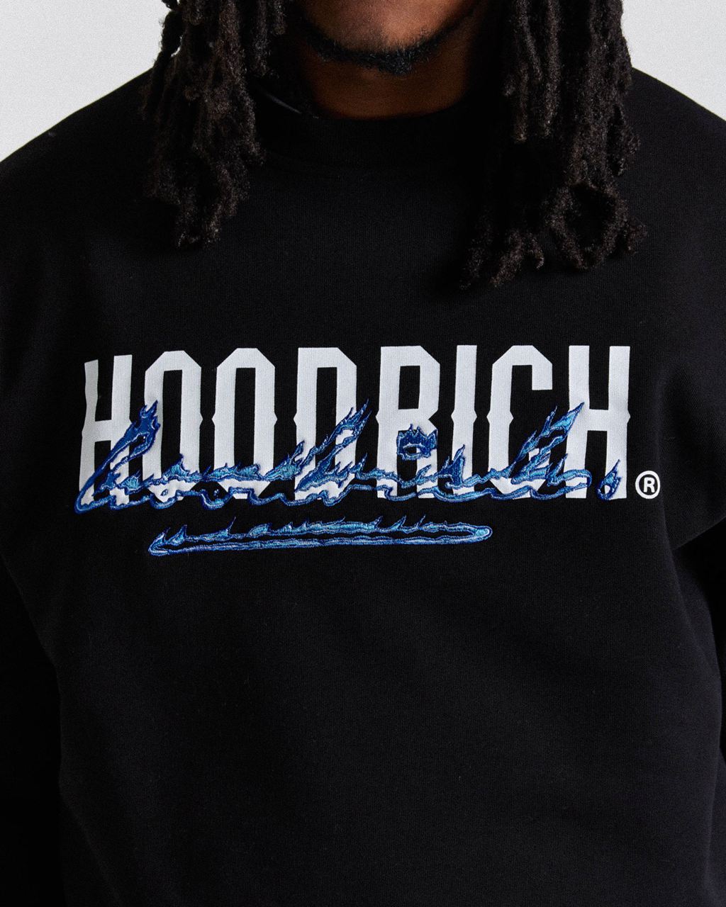 Hoodrich Flames Sweatshirt Black/White/Blues Mexico | ZRMI94065